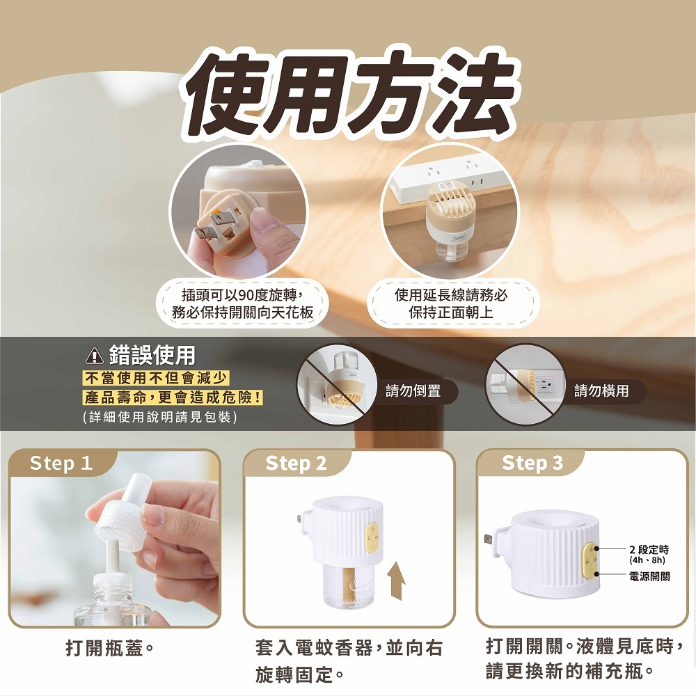 ◆ 內容物:定時電蚊香器+水性46ml補充瓶